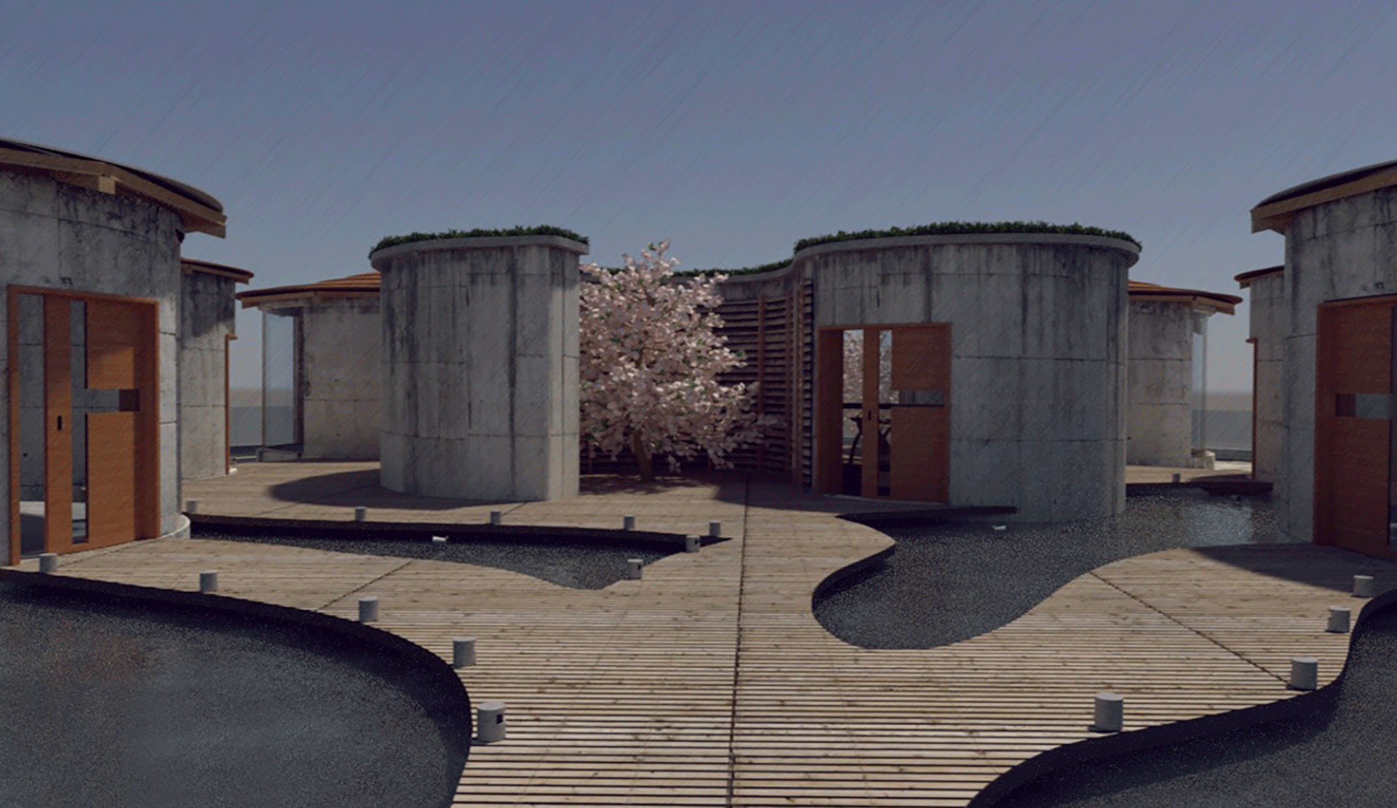 We thought to work on the connection in order to create new spaces, giving importance not only to the aesthetic aspect but also to the create the new possibility to socialise and make an activity for people living and passing their time in the hospital.